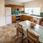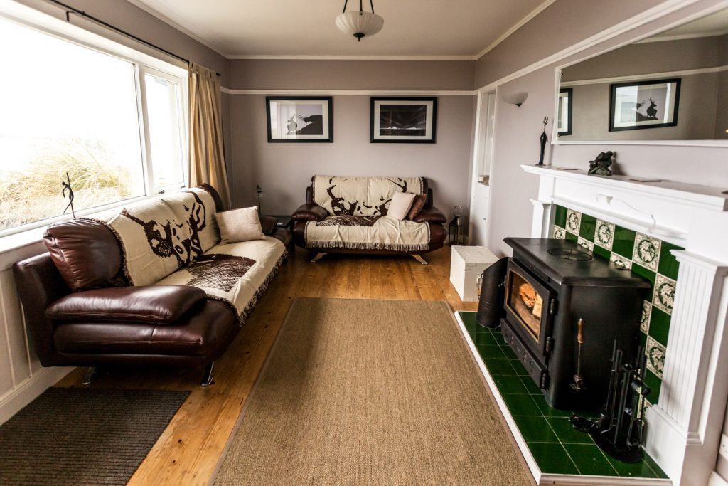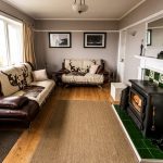 The living area has seating for 5 with a large wood burning stove it has a huge picture window with fantastic views over small isles bay and across to the mainland.