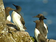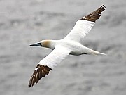 With their large and bright white with black wingtips and shiny bright feathers in the sunshine Gannets are very impressive birds. They feed by flying high and circling before plunging into the sea. They breed only in a few locations such as Ailsa Craig near Mull and the Bass Rock in the Firth of Forth.